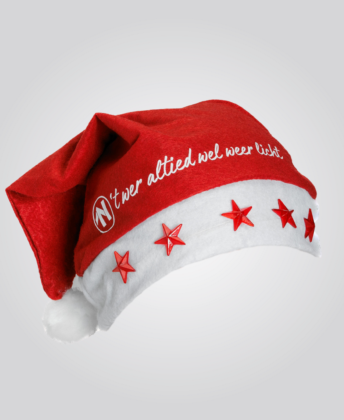 Met de ’t wer altied wel weer licht kerstmuts draag je een herinnering bij je dat zelfs in de donkerste tijd van het jaar een beetje licht geeft.
